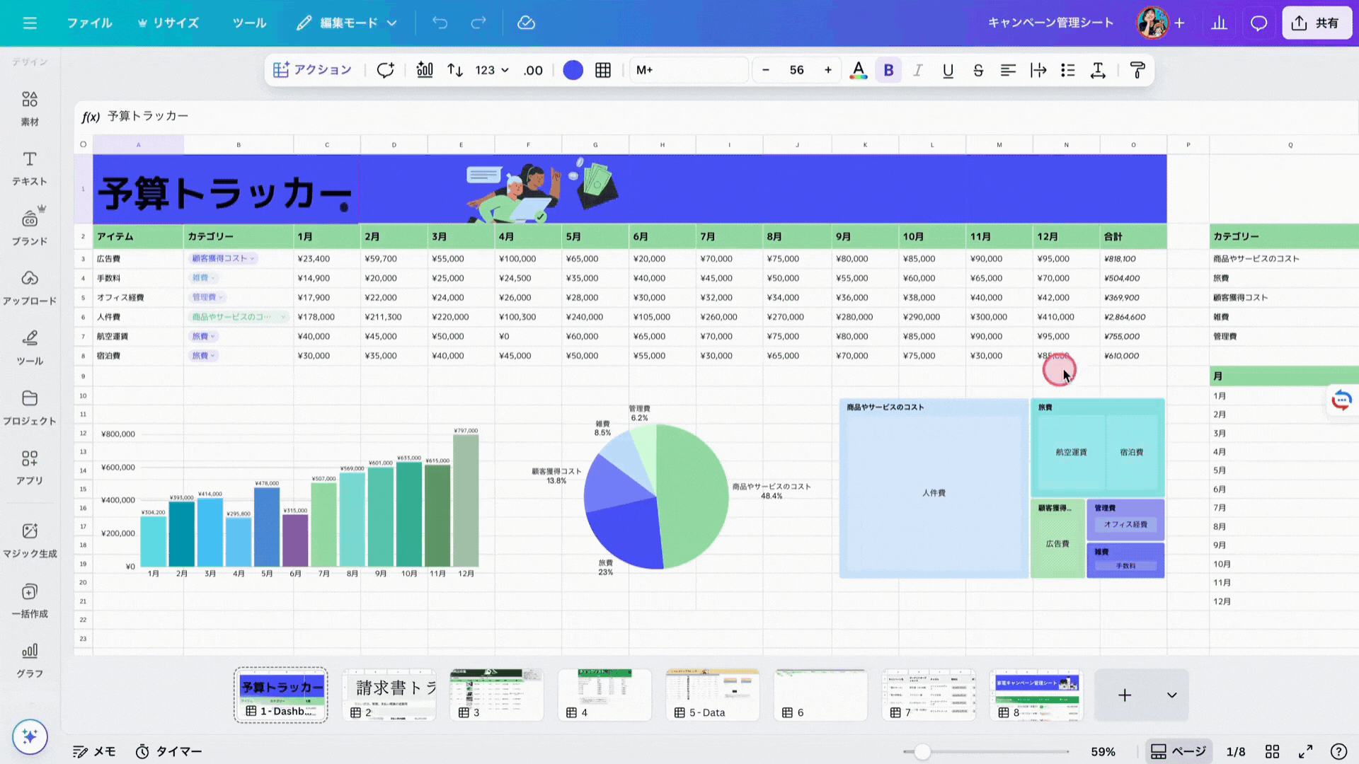 ビジネスの現場では「スプレッドシートで管理することが一般的」になっていますが、Canvaでも「Canvaシート」というドキュメントがあるのはご存知でしょうか?