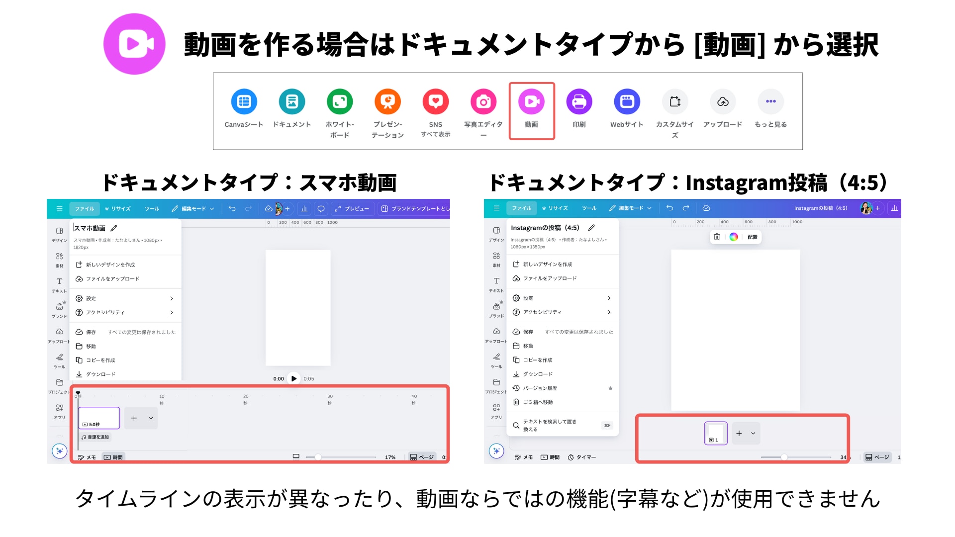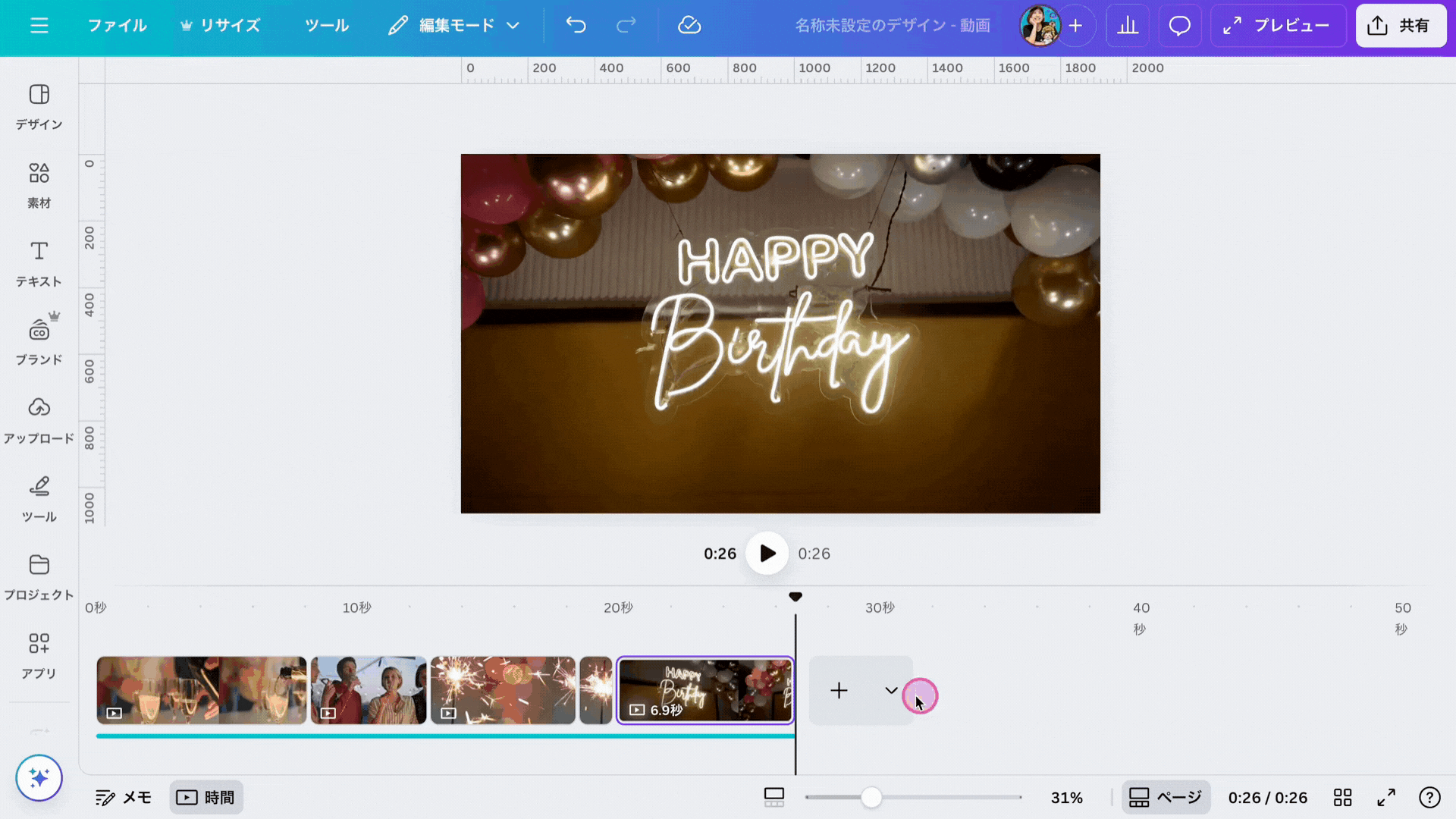 基本操作は他のデザインを作る時と同じですが、細かいところで編集ボタンや使う機能が異なるので記事を見ながら動画制作にも挑戦してみてください。