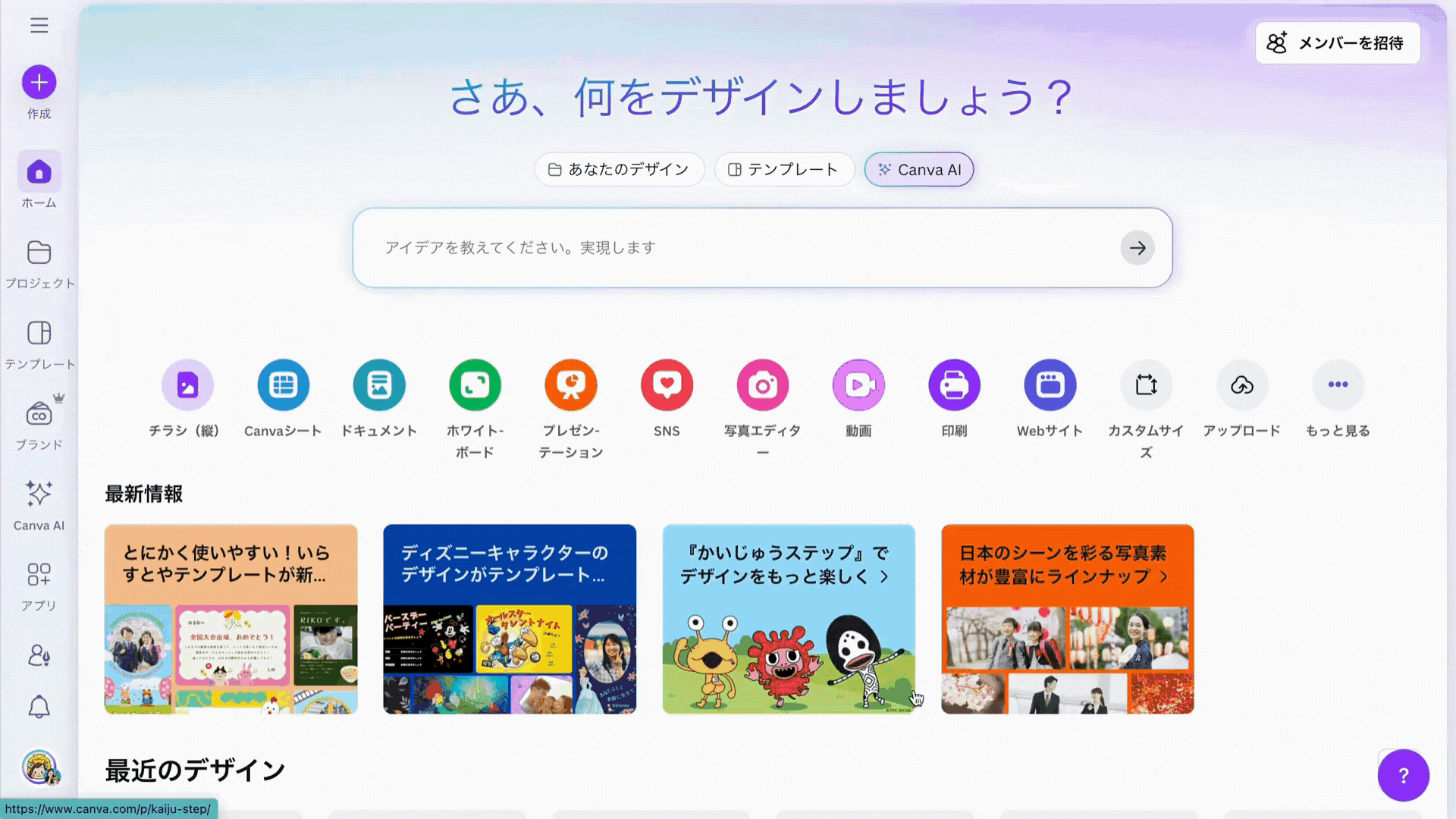 Canvaの検索バーでキーワードを入力し、好みの雰囲気や構成に合ったテンプレートを選びます。