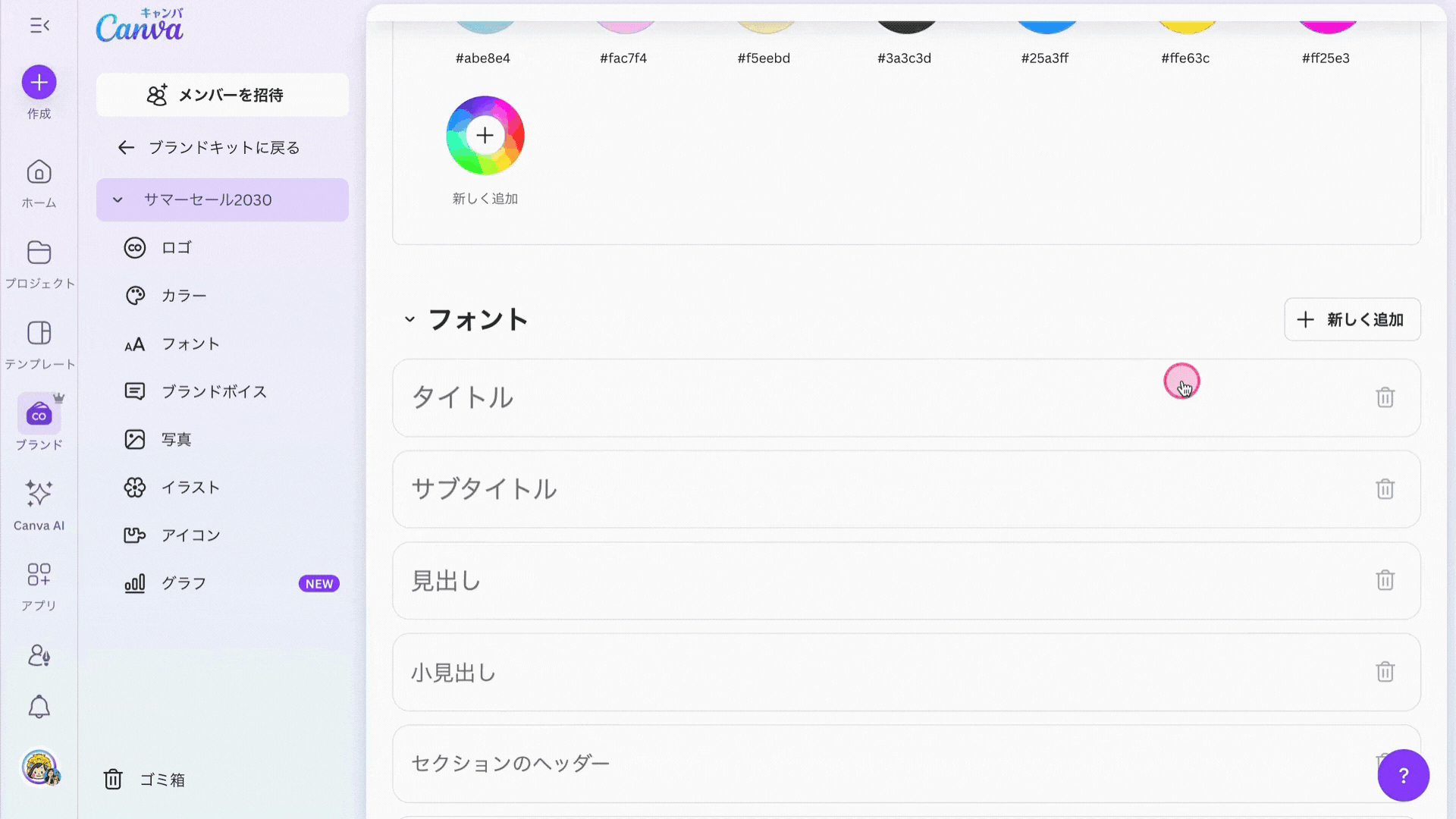 Canvaの「ブランド機能」は、社内で複数人がデザインを扱う企業にとって非常に便利な機能です。