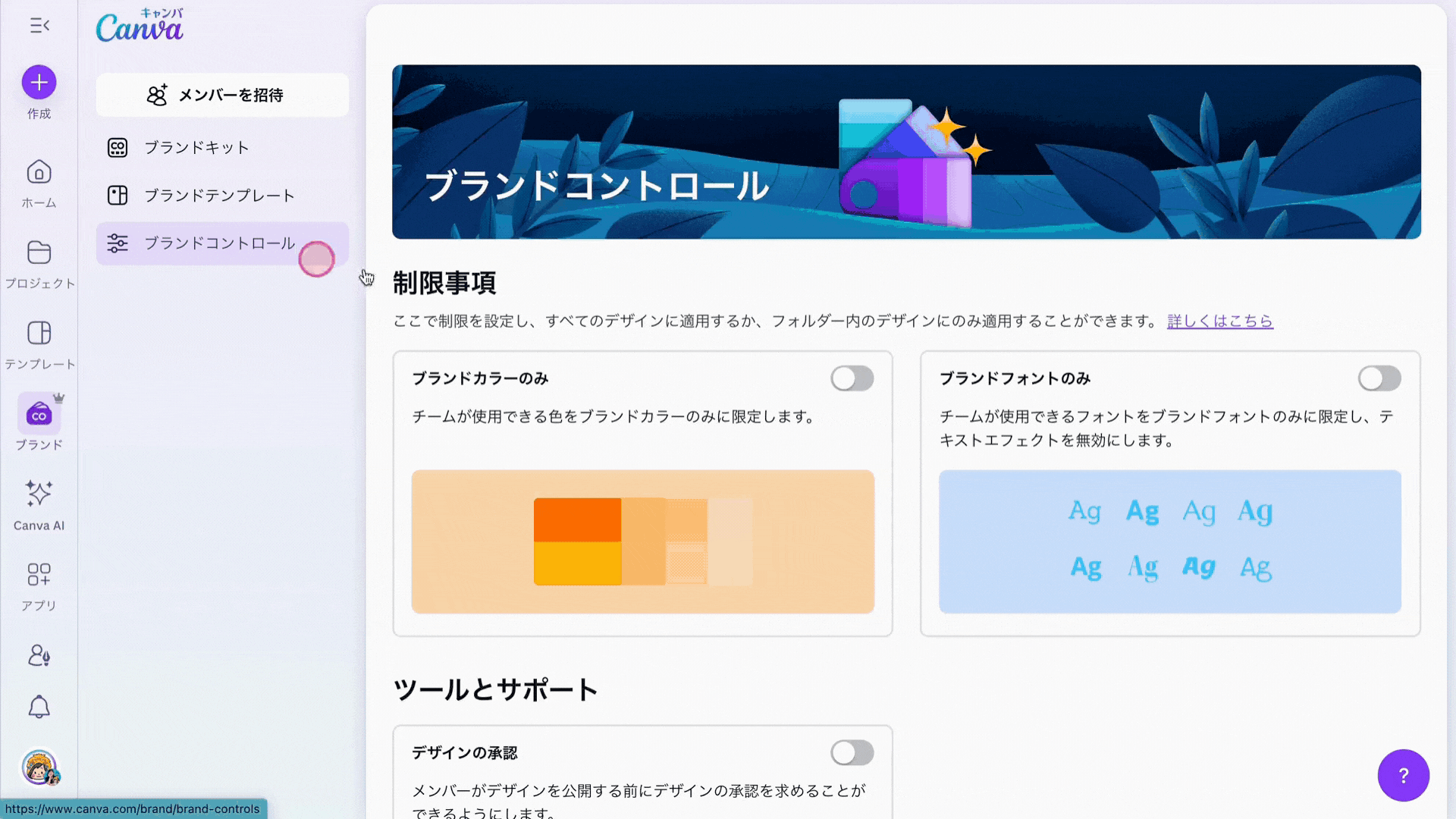 ブランドコントロールは、チーム全体のデザインに統一感を持たせるための機能です。